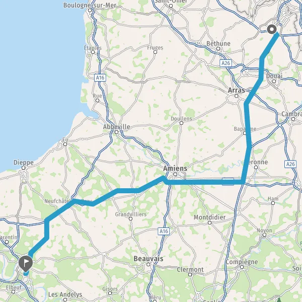 Prendre à droite et rejoindre A16 A29 E44. Continuer sur 4 kilomètres