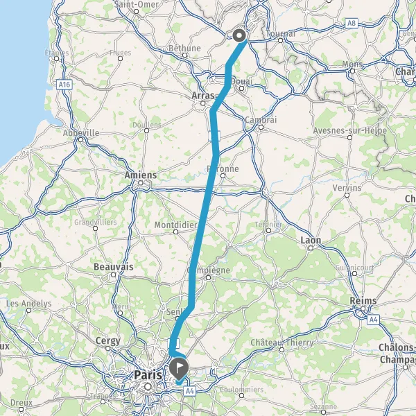 Continuer E17 (Autoroute du Nord) sur 161 kilomètres