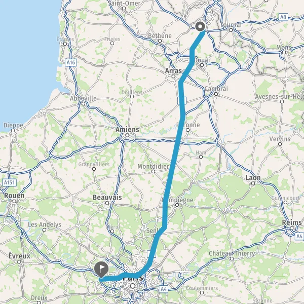Continuer E17 (Autoroute du Nord) sur 182 kilomètres