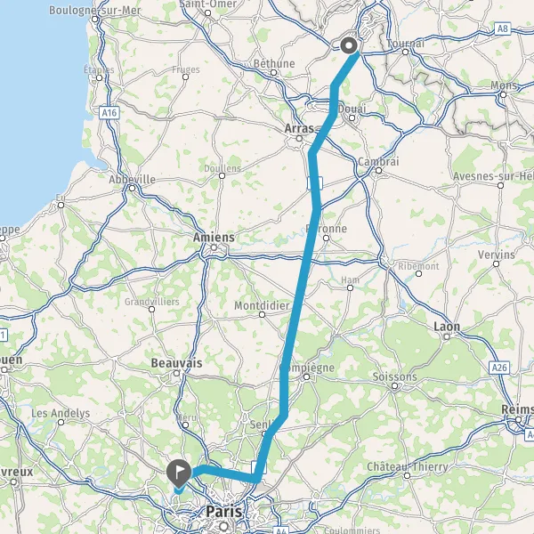Continuer E17 (Autoroute du Nord) sur 168 kilomètres