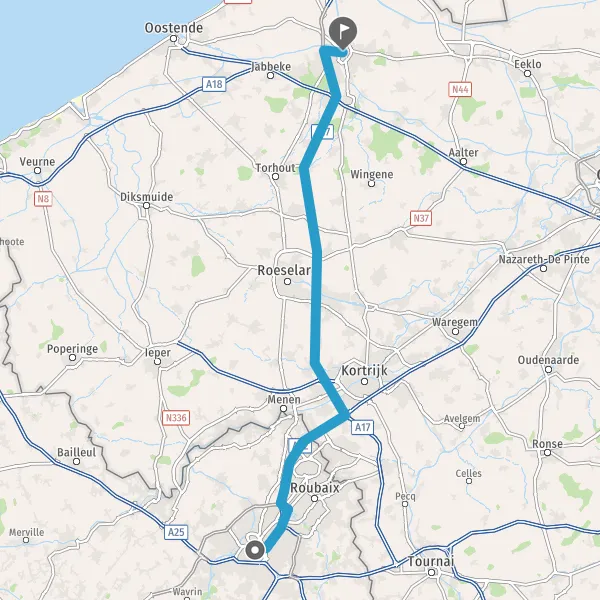 Prendre à gauche et rejoindre A22 E17. Continuer sur 12 kilomètres