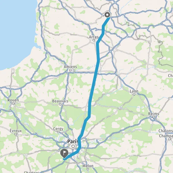 Continuer E17 (Autoroute du Nord) sur 161 kilomètres