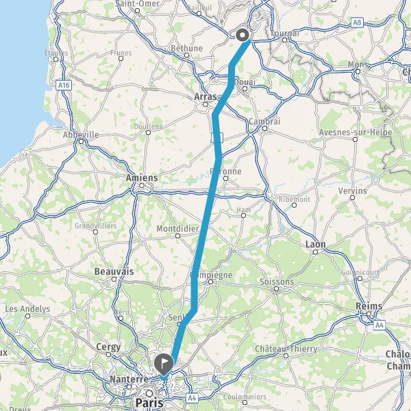 Continuer E17 (Autoroute du Nord) sur 161 kilomètres