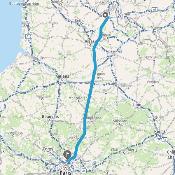 Continuer E17 (Autoroute du Nord) sur 168 kilomètres