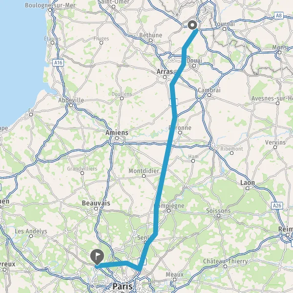 Continuer E17 (Autoroute du Nord) sur 161 kilomètres