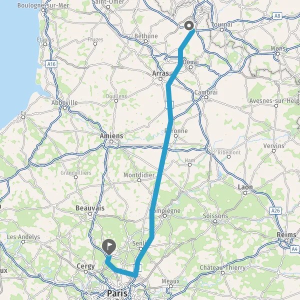 Continuer E17 (Autoroute du Nord) sur 168 kilomètres