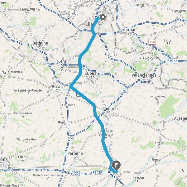 Prendre à droite et rejoindre A26 E17. Continuer sur 60 kilomètres