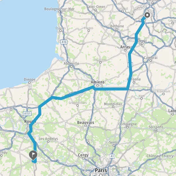 Prendre à droite et rejoindre A154. Continuer sur 27 kilomètres