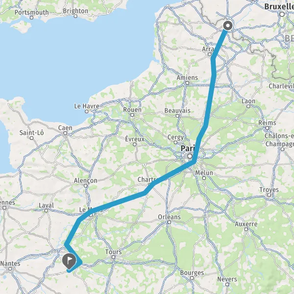 Prendre à droite et rejoindre A11 E50. Continuer sur 147 kilomètres