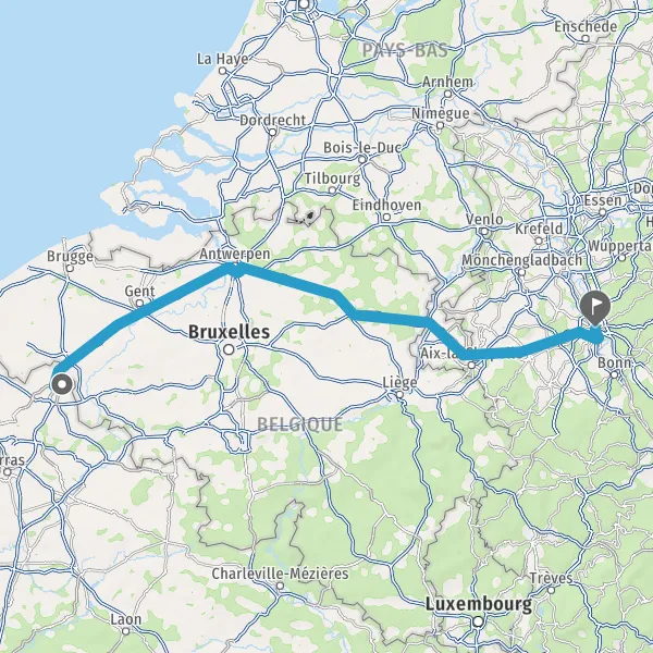 Prendre à droite et rejoindre A22 E17. Continuer sur 10 kilomètres