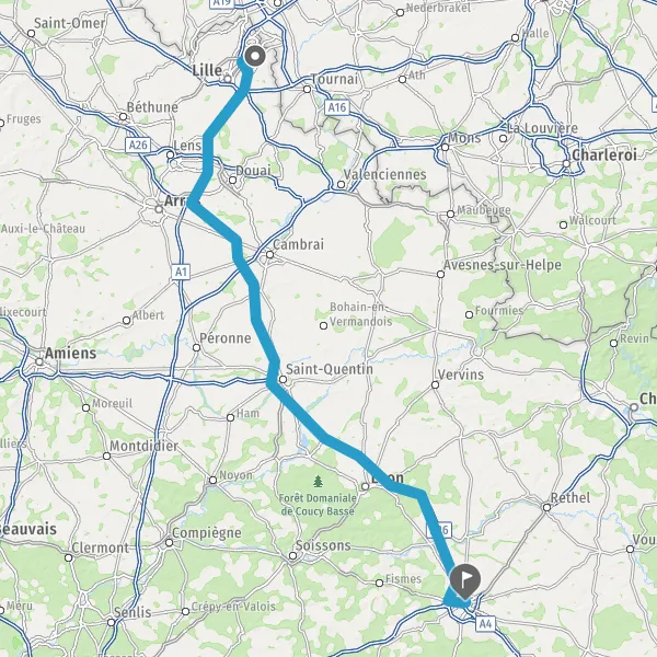 Prendre à droite et rejoindre A26 E17. Continuer sur 156 kilomètres