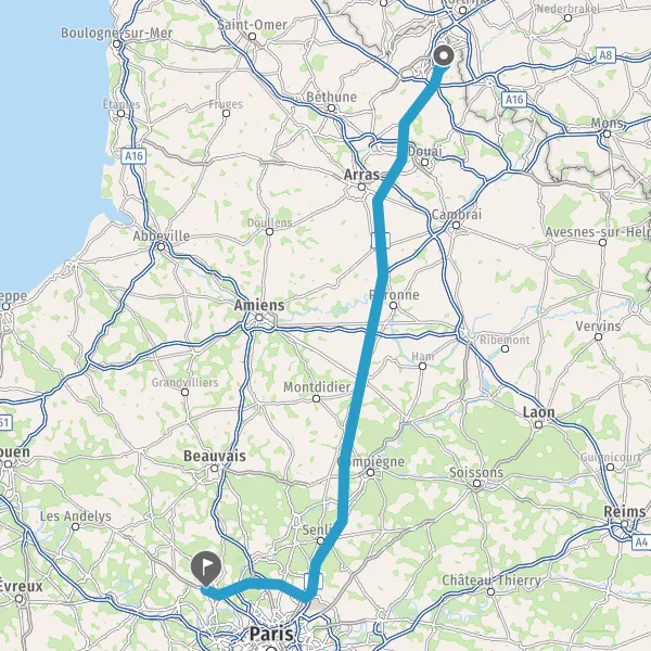 Continuer E17 (Autoroute du Nord) sur 168 kilomètres