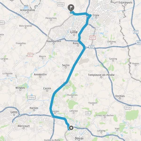 Sortir et rejoindre M108 (Rue de Marquette). Continuer sur 350 mètres