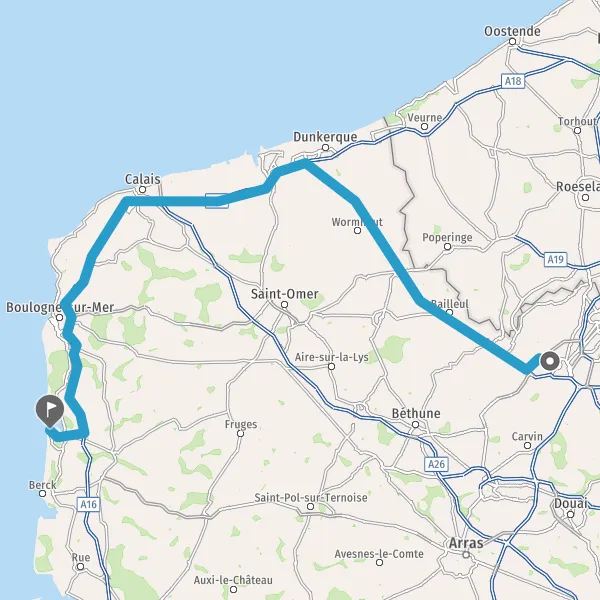 Prendre à droite et rejoindre A16. Continuer sur 68 kilomètres