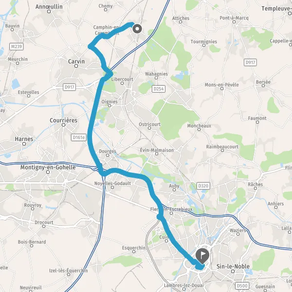 Au rond-point, prendre la 2ème sortie sur Rue d'Esquerchin et continuer sur 450 mètres