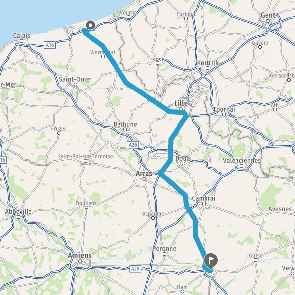 Prendre à droite et rejoindre A26 E17. Continuer sur 60 kilomètres