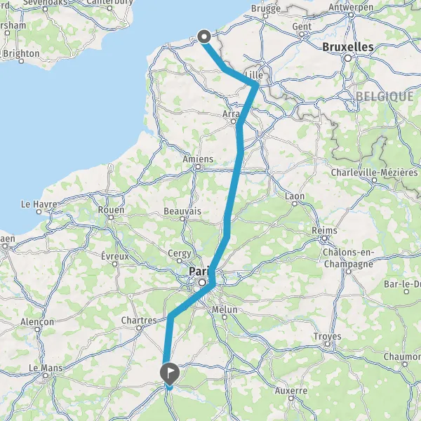 Prendre à droite et rejoindre A10. Continuer sur 34 kilomètres