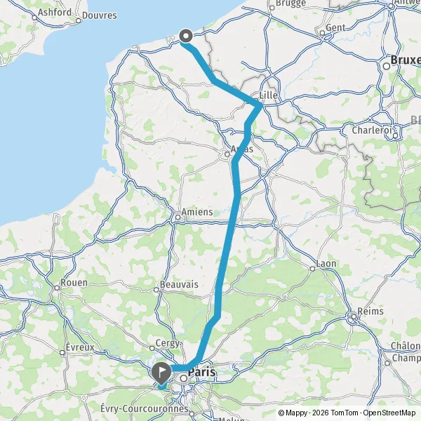 Continuer E17 (Autoroute du Nord) sur 161 kilomètres