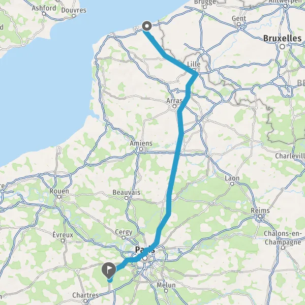 Continuer E17 (Autoroute du Nord) sur 182 kilomètres