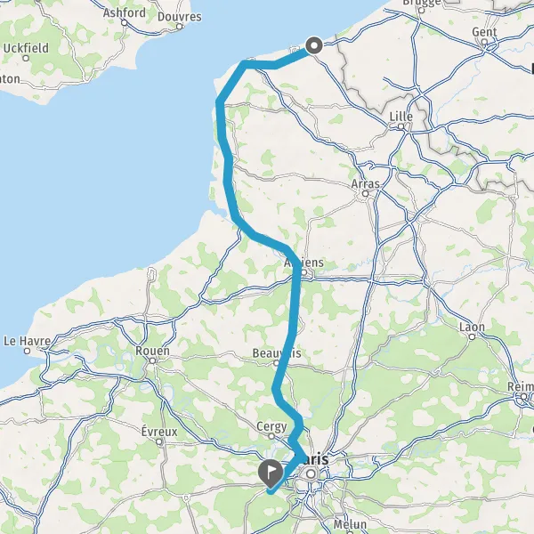 Continuer E17 (Autoroute du Nord) sur 182 kilomètres