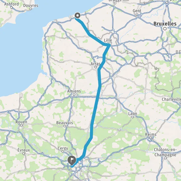 Continuer E17 (Autoroute du Nord) sur 182 kilomètres