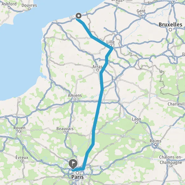 Continuer E17 (Autoroute du Nord) sur 182 kilomètres