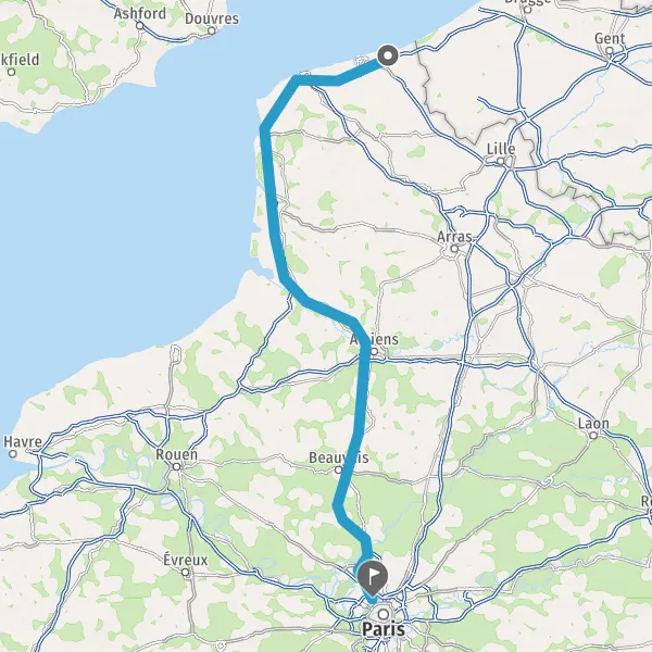 Continuer E17 (Autoroute du Nord) sur 182 kilomètres