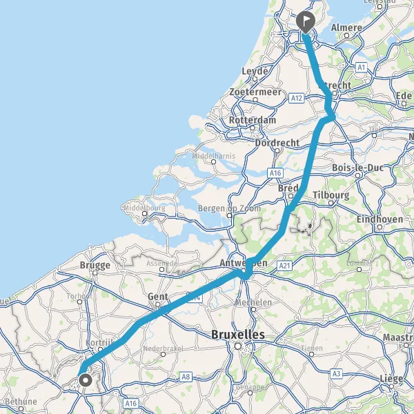 Prendre à droite et rejoindre A22 E17. Continuer sur 10 kilomètres