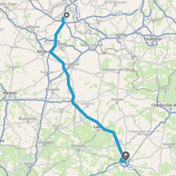 Prendre à droite et rejoindre A26 E17. Continuer sur 156 kilomètres