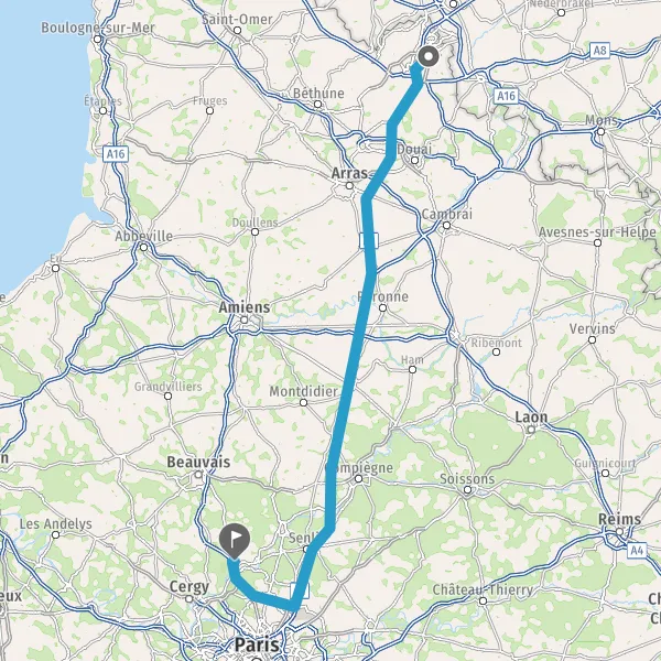 Prendre à droite et rejoindre A16. Continuer sur 10 kilomètres