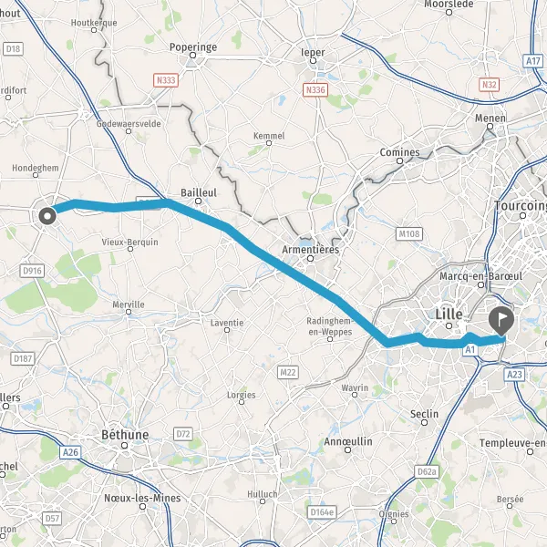 Prendre à droite et rejoindre A25 E42. Continuer sur 32 kilomètres