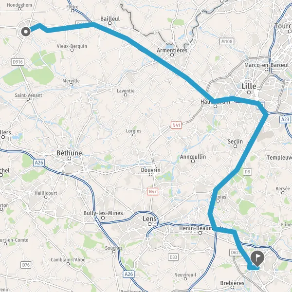 Au rond-point, prendre la 2ème sortie sur D643 (Rue de Béthune) et continuer sur 290 mètres