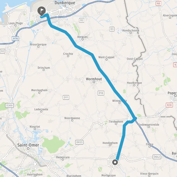 Au rond-point, prendre la 2ème sortie sur D916 (Rue de Steenvoorde) et continuer sur 2,5 kilomètres