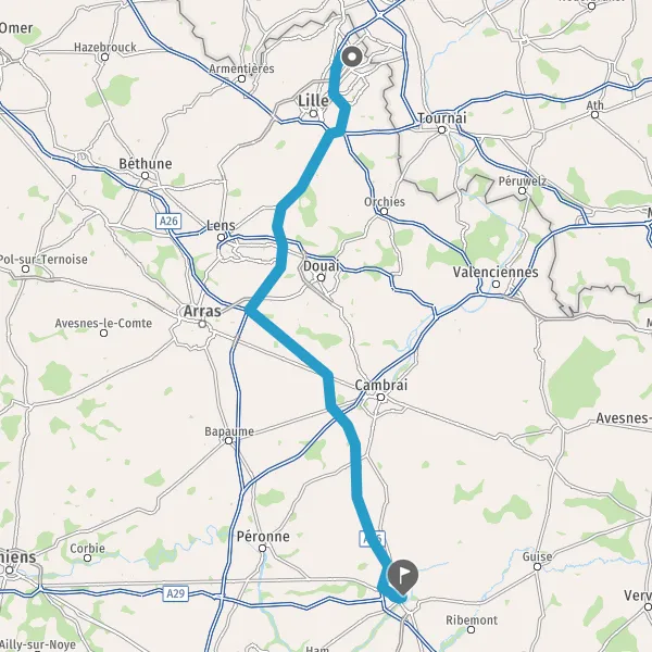 Prendre à droite et rejoindre A26 E17. Continuer sur 60 kilomètres