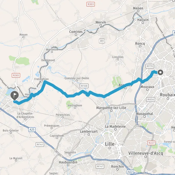 Au rond-point, prendre la 1ère sortie sur M654 (Route de Bondues) et continuer sur 600 mètres