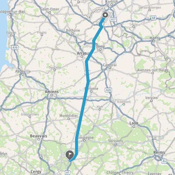 Continuer E17 (Autoroute du Nord) sur 145 kilomètres