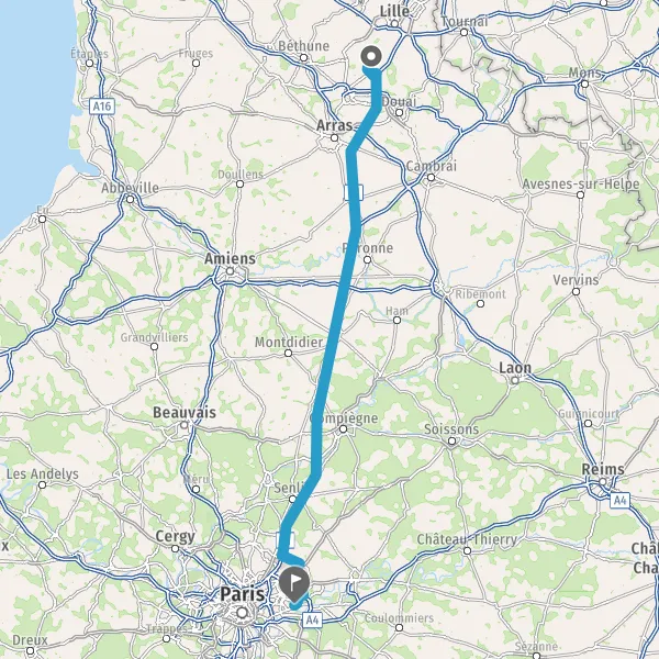 Continuer E17 (Autoroute du Nord) sur 168 kilomètres