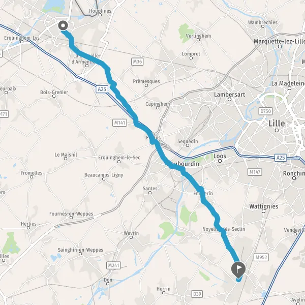 Prendre à droite et rejoindre M952 (Rue de Seclin). Continuer sur 1,6 kilomètre