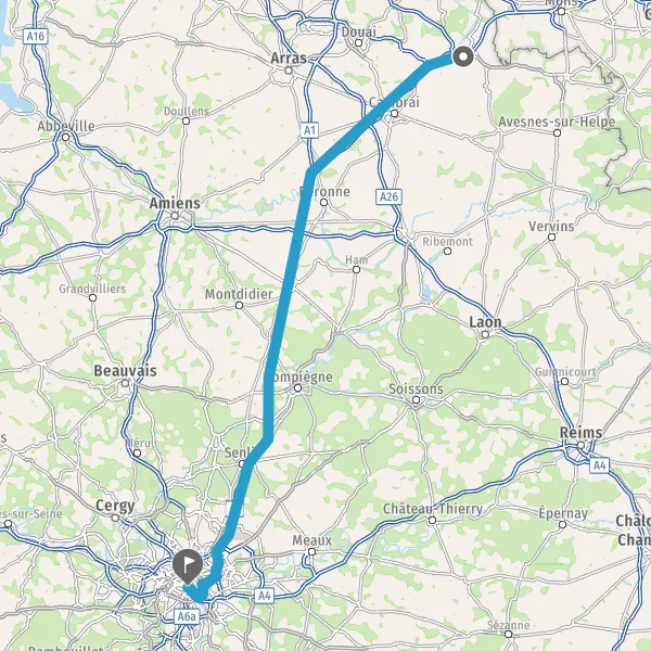 Continuer A1 A1 E19 E15 sur 108 kilomètres
