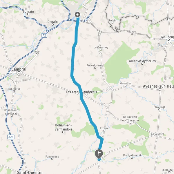 Tourner à gauche sur D12 (Route de Guise) et continuer sur 17 kilomètres
