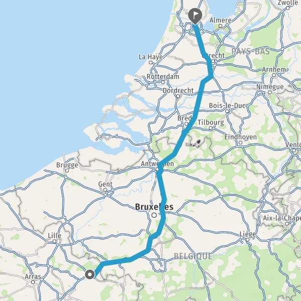 Continuer et rejoindre A2 E19. Continuer sur 17 kilomètres
