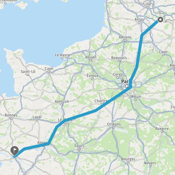 Prendre à droite et rejoindre A11 E50. Continuer sur 147 kilomètres