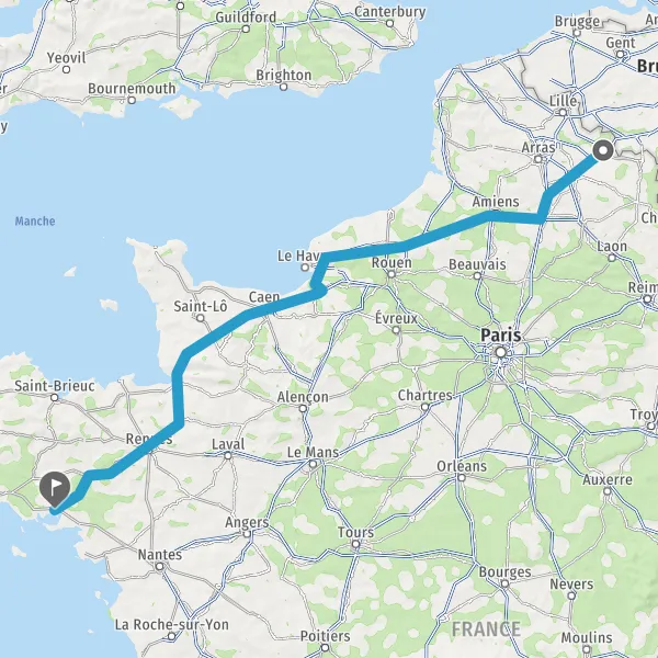 Prendre à droite et rejoindre A84 E401. Continuer sur 165 kilomètres
