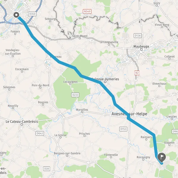 Au rond-point, prendre la 3ème sortie sur D951 (Route d'Aulnoye) et continuer sur 4,8 kilomètres
