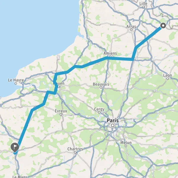 Prendre à droite et rejoindre A28 E402. Continuer sur 125 kilomètres