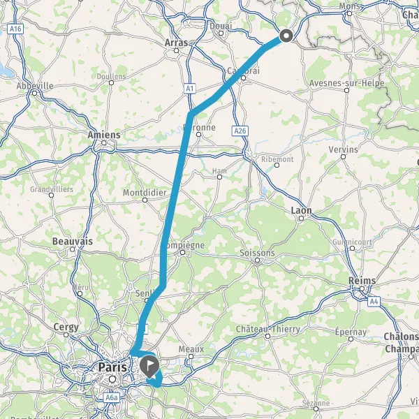 Continuer A1 A1 E19 E15 sur 120 kilomètres
