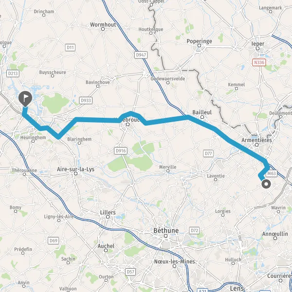 Au rond-point, prendre la 3ème sortie sur D642 (Route d'Hazebrouck) et continuer sur 5,5 kilomètres