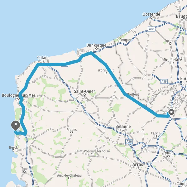 Prendre à droite et rejoindre A16. Continuer sur 68 kilomètres