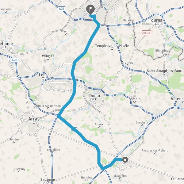 Continuer et rejoindre A26 E17. Continuer sur 26 kilomètres