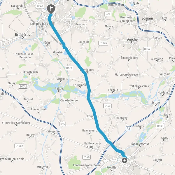 Tourner légèrement à droite sur D643 (Rue de Cambrai) et continuer sur 140 mètres